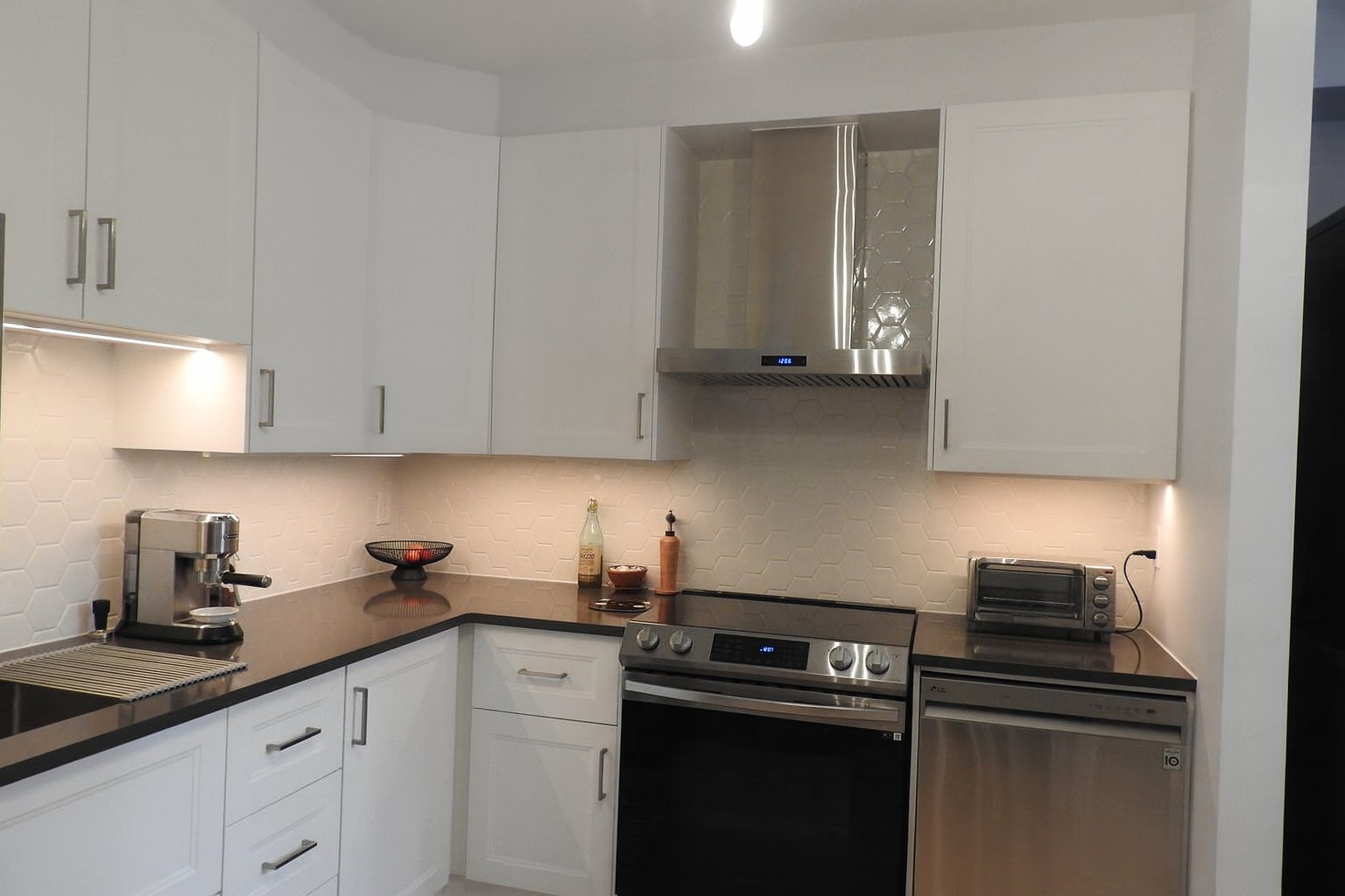 au 4987- RDC : poêle, frigidaire,lave-vaisselle, luminaires, habillage de fenêtres, le tout sans garantie aucune