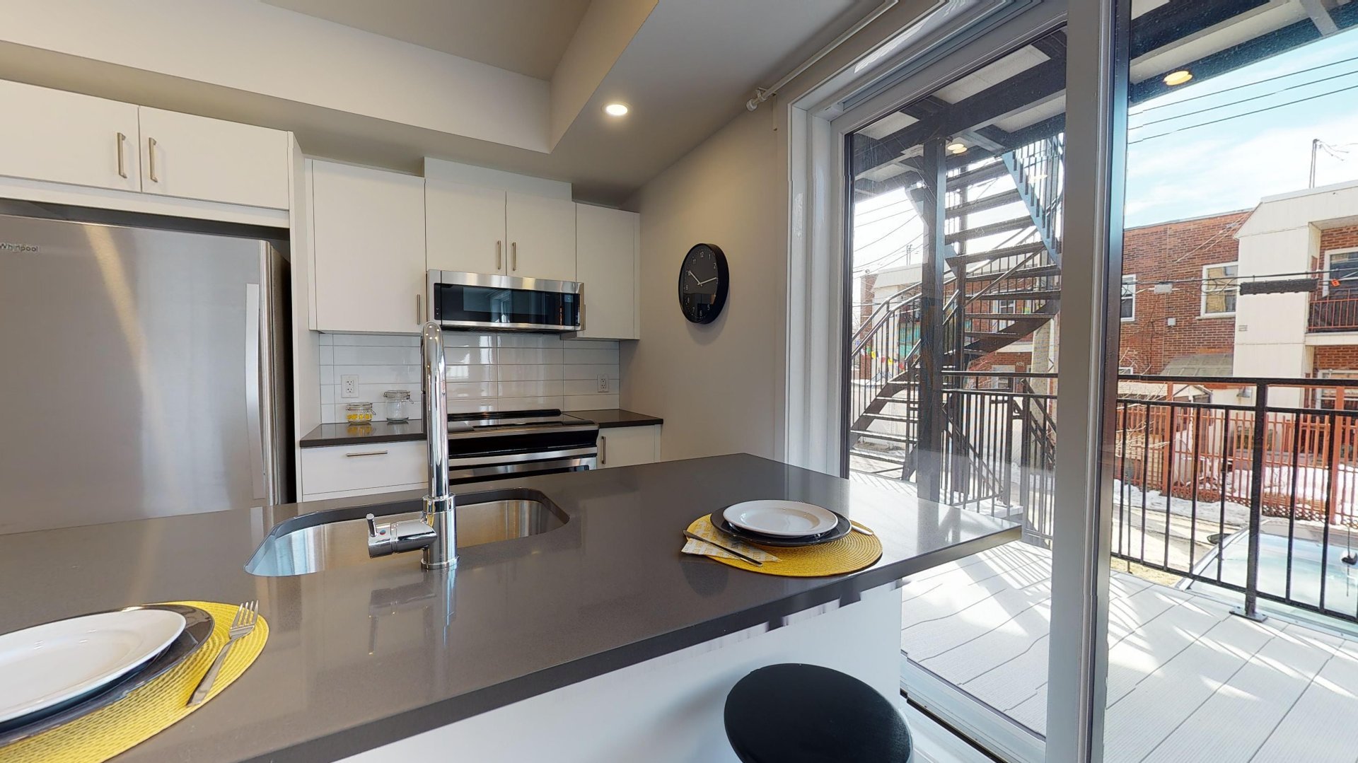 Air climatisé et grand balcon donnant sur cour arrière ensolellée