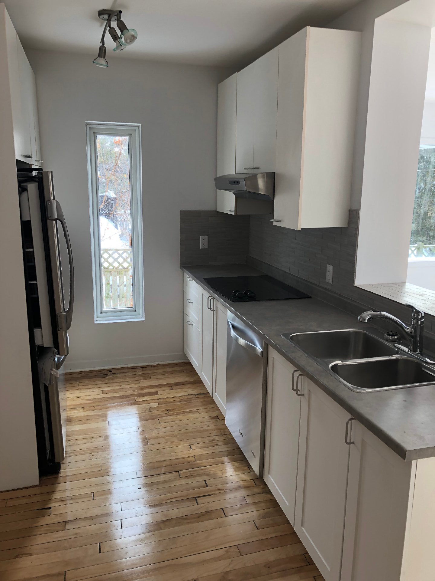 Lachine Ouest -- 54e Avenue Grand bas de duplex entièrement rénové, offrant une superficie de 1 400 pi².Comprend 3 chambres à coucher, une cuisine, un salon et une salle à manger à aire ouverte, ainsi qu'un solarium lumineux.