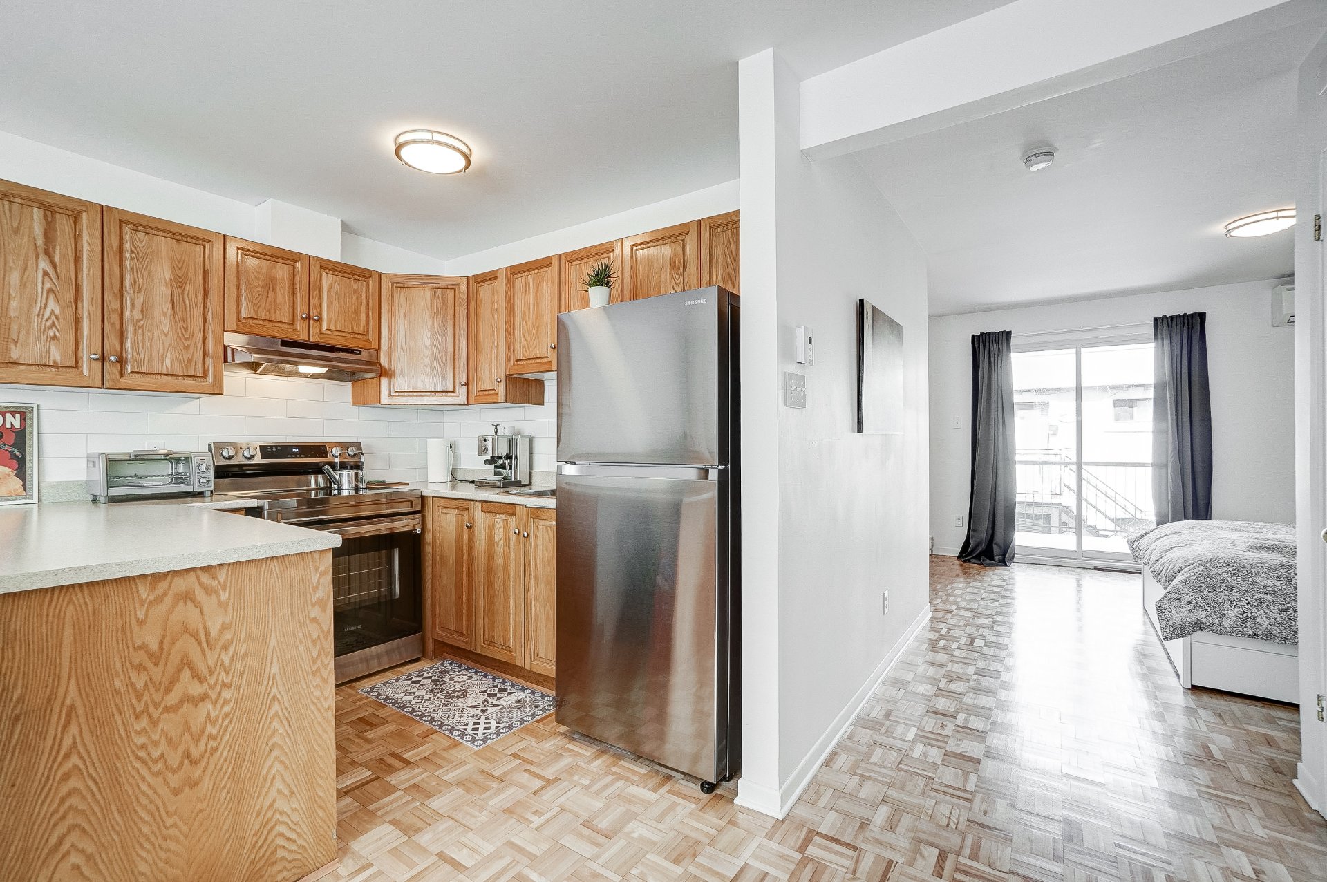 Le parc du Mont-Royal est à quelques rues.DESCRIPTION DES UNITÉS:4601 St-Dominique: L'appartement est situé au 2ième étage, comprend une chambre à aire ouverte avec espace bureau, une salle de bain avec douche moderne, laveuse et sécheuse incluses, une cuisine avec armoires en bois, comprenant: poêle, frigidaire, lave-vaisselle et micro-ondes.