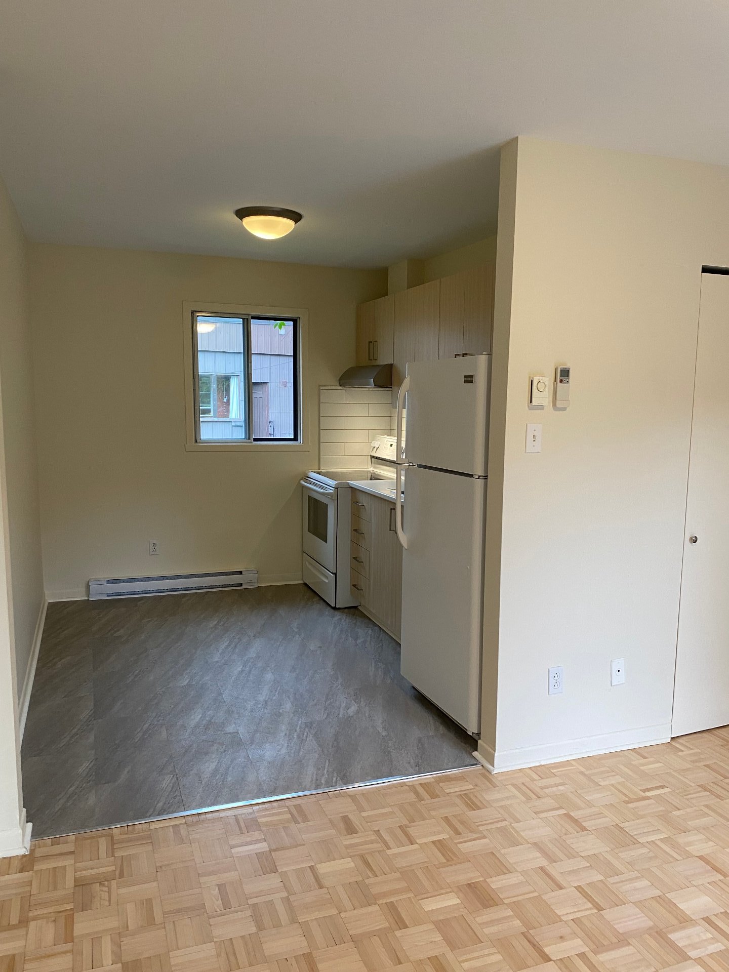 4605 A St-Dominiquechambre à coucher, une salle de bain avec douche moderne, laveuse et sécheuse incluses, une cuisine avec armoires en mélamine comprenant: poêle, frigidaire.L'appartement d'approximativement 400 pieds carrés comprend aussi un balcon.
