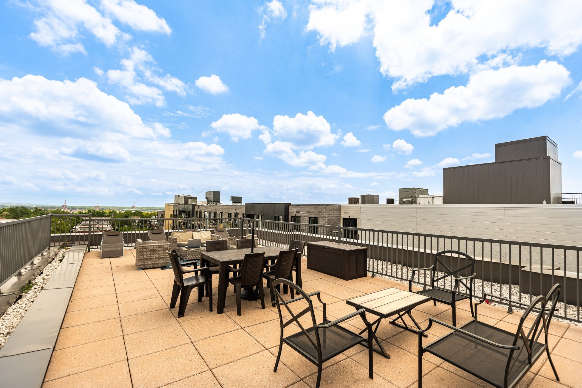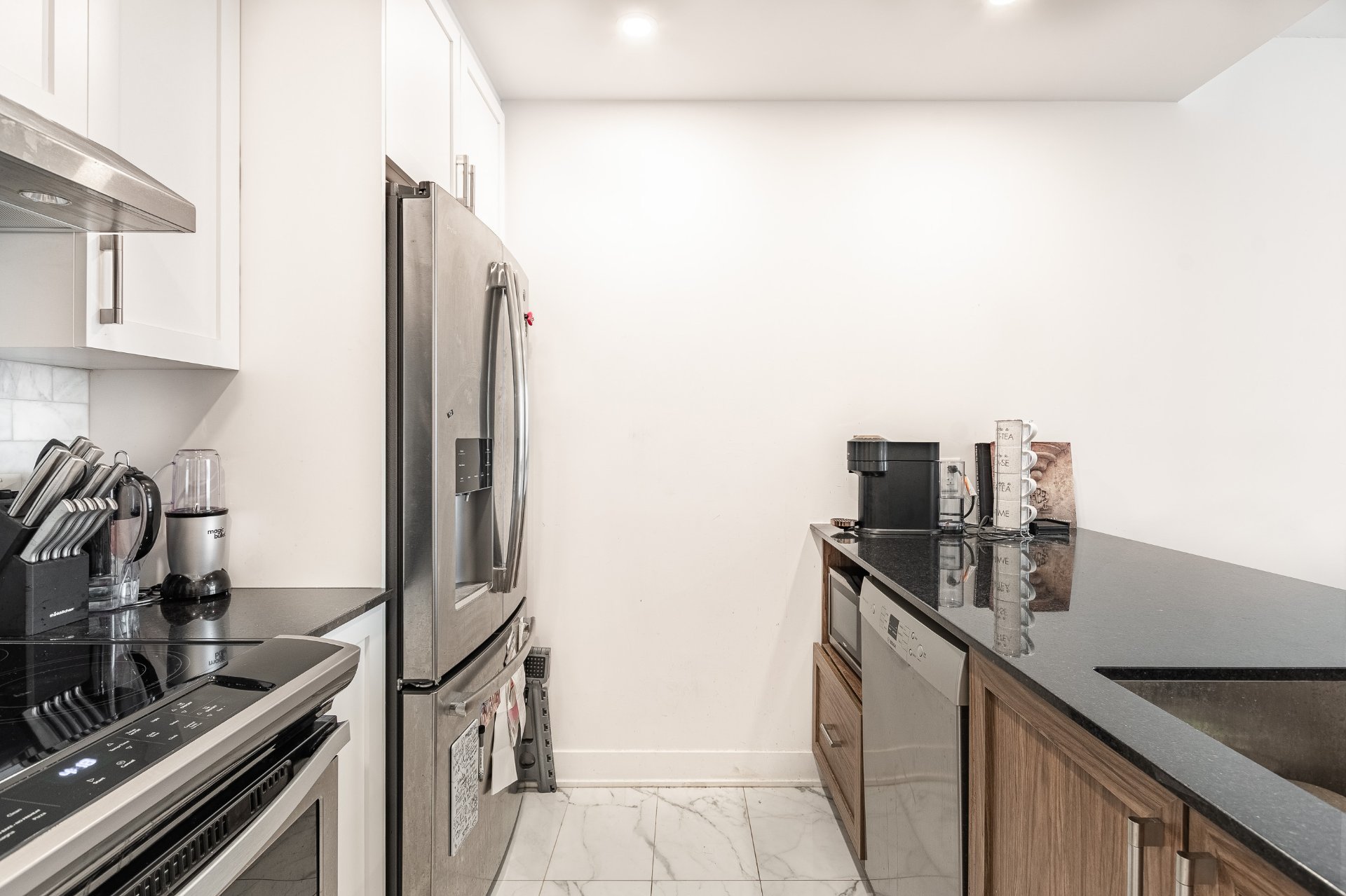Tous les électroménagers inclus.Balcon privée, espace de rangement intérieur et magnifique terrasse commune sur le toit ainsi qu'une salle d'entraînement.