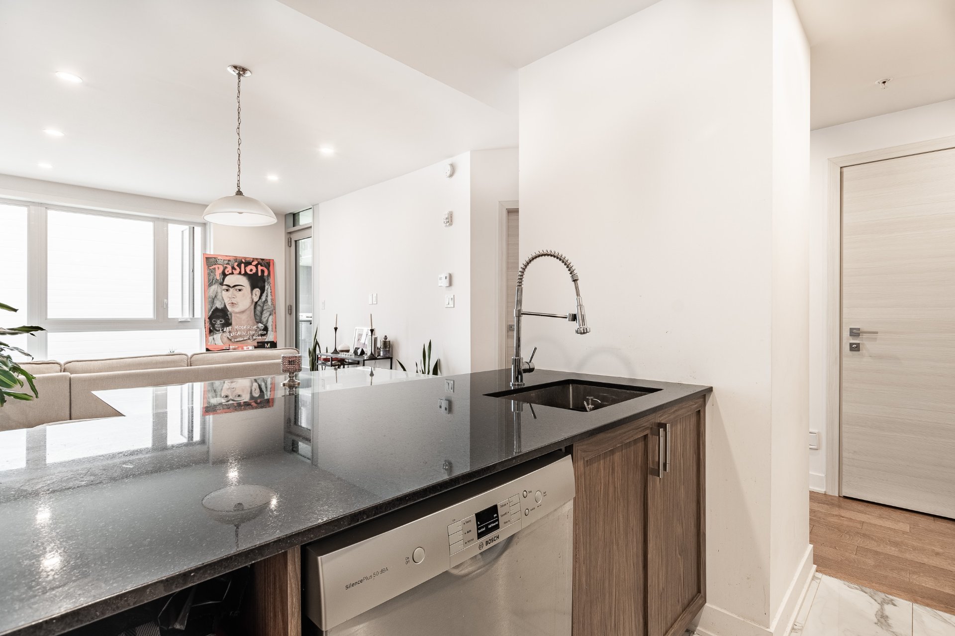 moins de 5 min de marche du Métro Langelier.Condo béton construction 2021 de 6 étages avec plancher de bois franc, armoire en thermoplastique et comptoir de quartz.