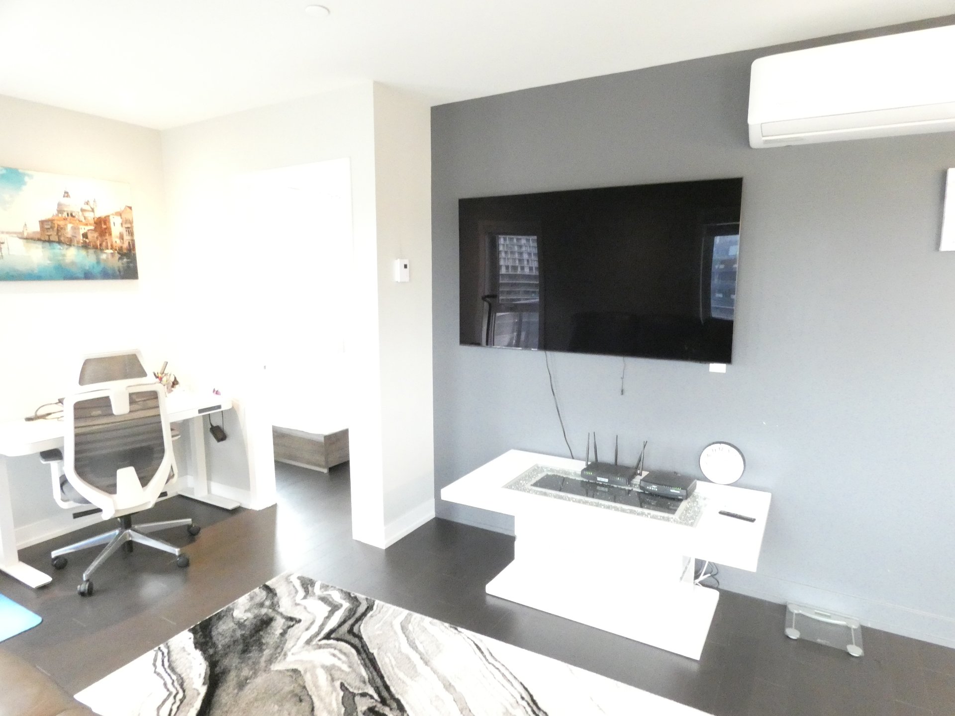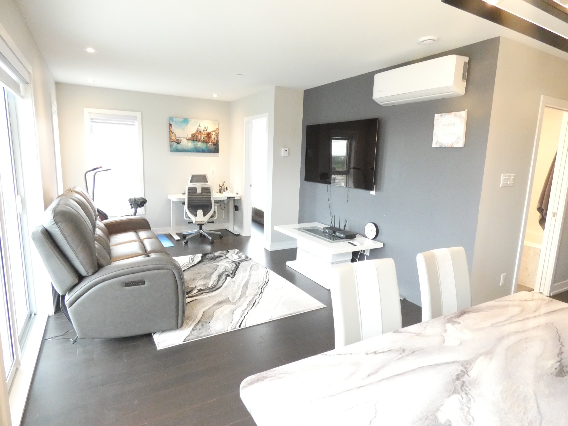 Air climatisé et grand balcon avec vue sur Montréal.