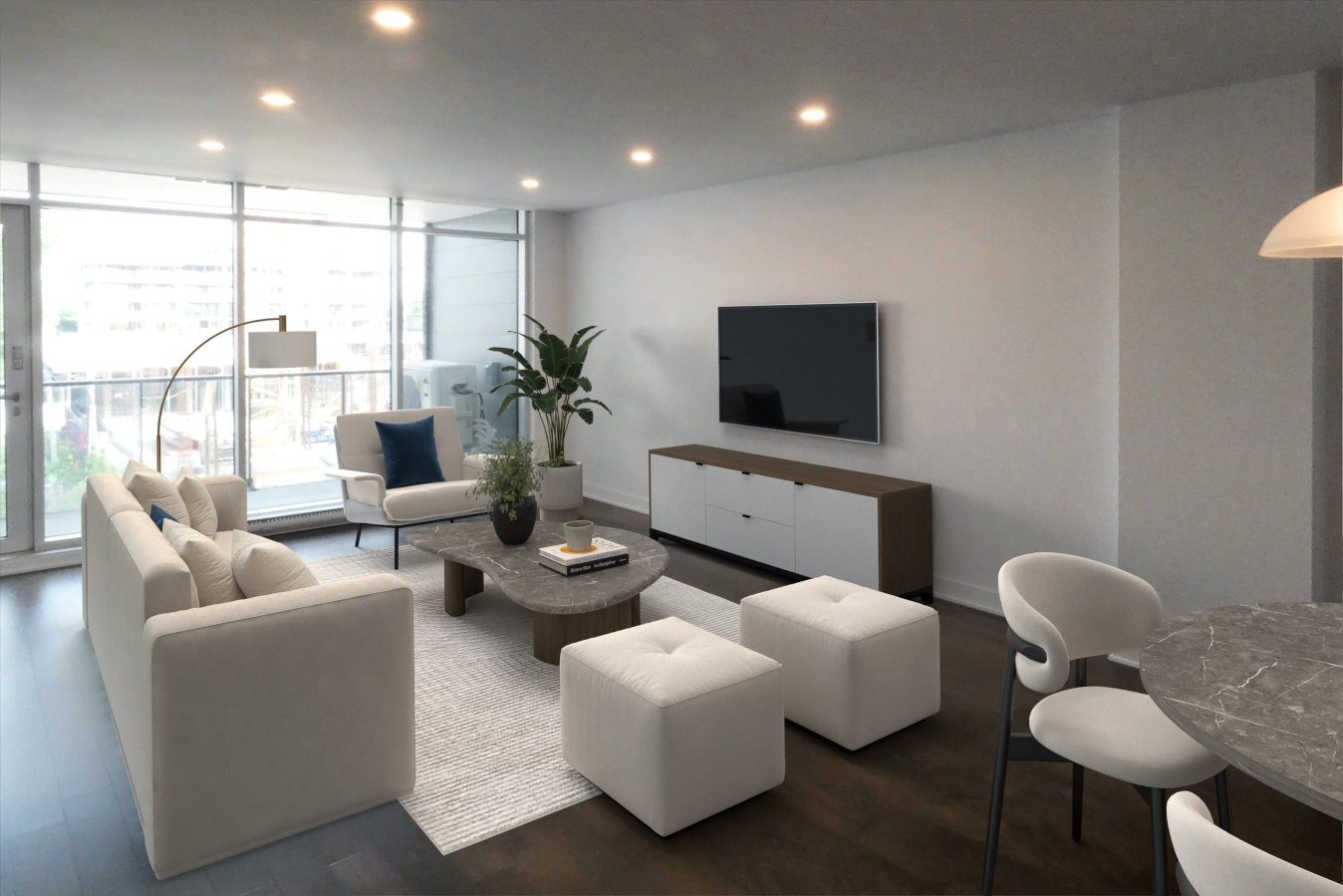 Tous les électros sont inclus, luminaires ainsi que les stores qui ont été faits sur mesure. Les taxes foncières et les frais de condo sont inclus, Eau chaude inclus